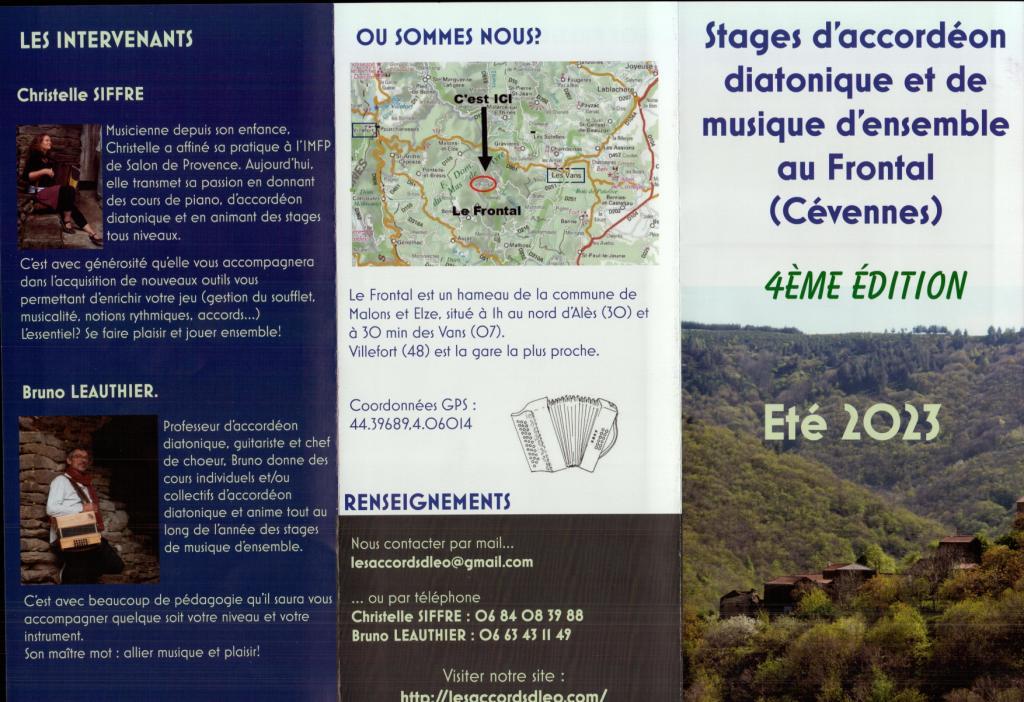 - du 13 au 17 juillet : stage accordéon diatonique tous niveaux (sauf débutants), animé par Christelle SIFFRE